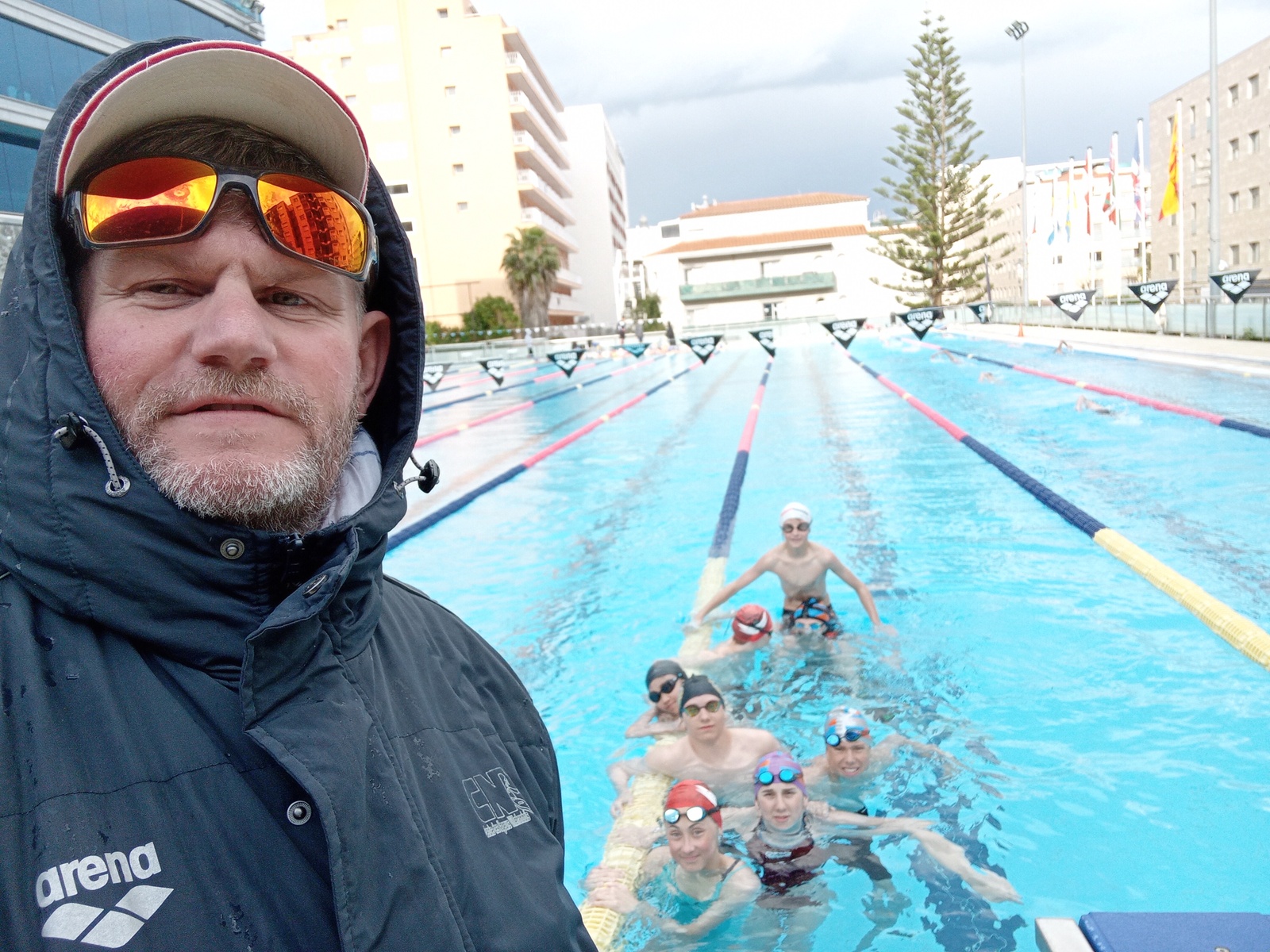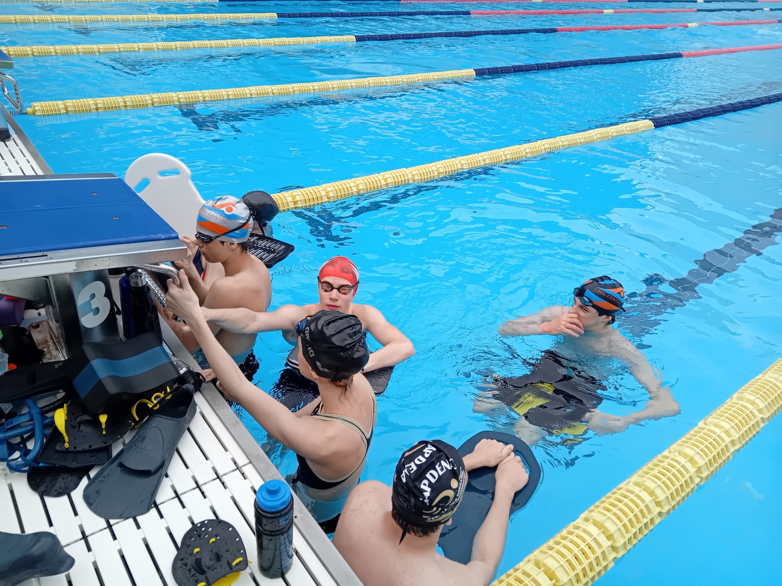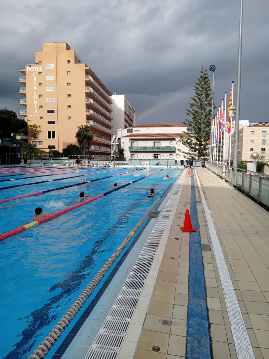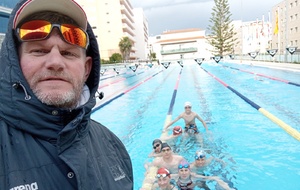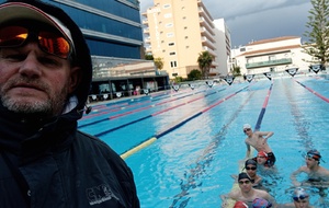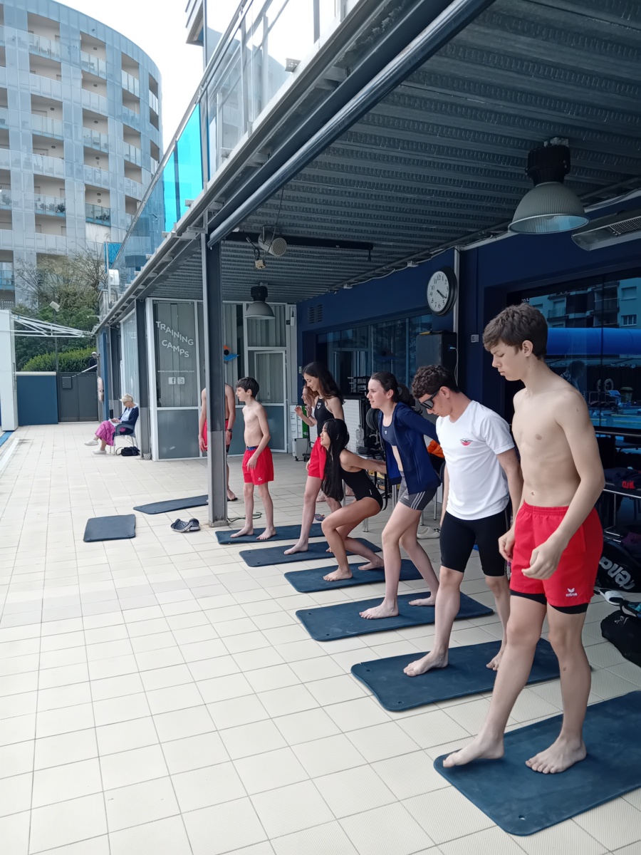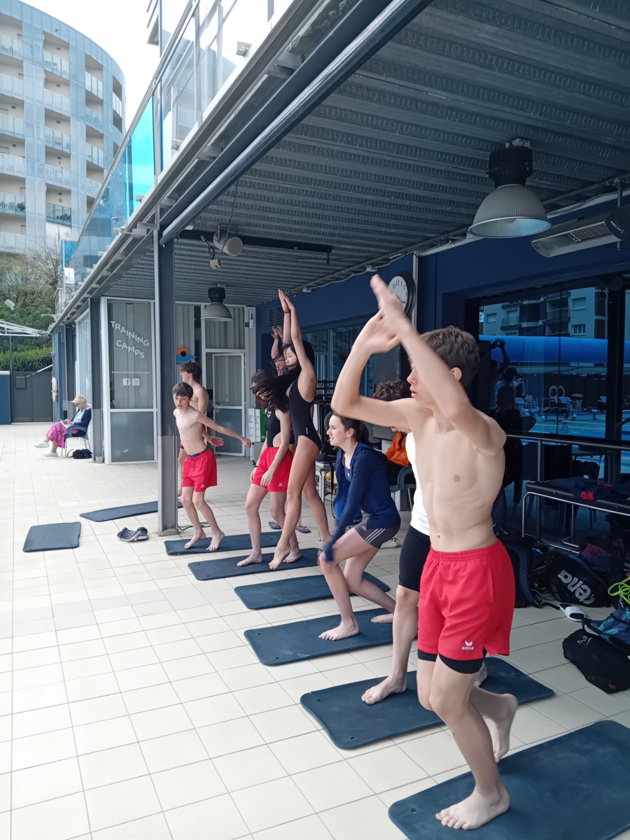 au programme de cette semaine de stage : 2 séances de natation par jour, matin de 9h à 11h et après-midi de 16h30 à 18h30, également préparation à sec ; étirements et renforcement musculaire type gainage, travail en prophylactique (prévention des blessures) surtaout aux niveau des épaules et chevilles. conseils sur le repos et alimentation/hydratation.